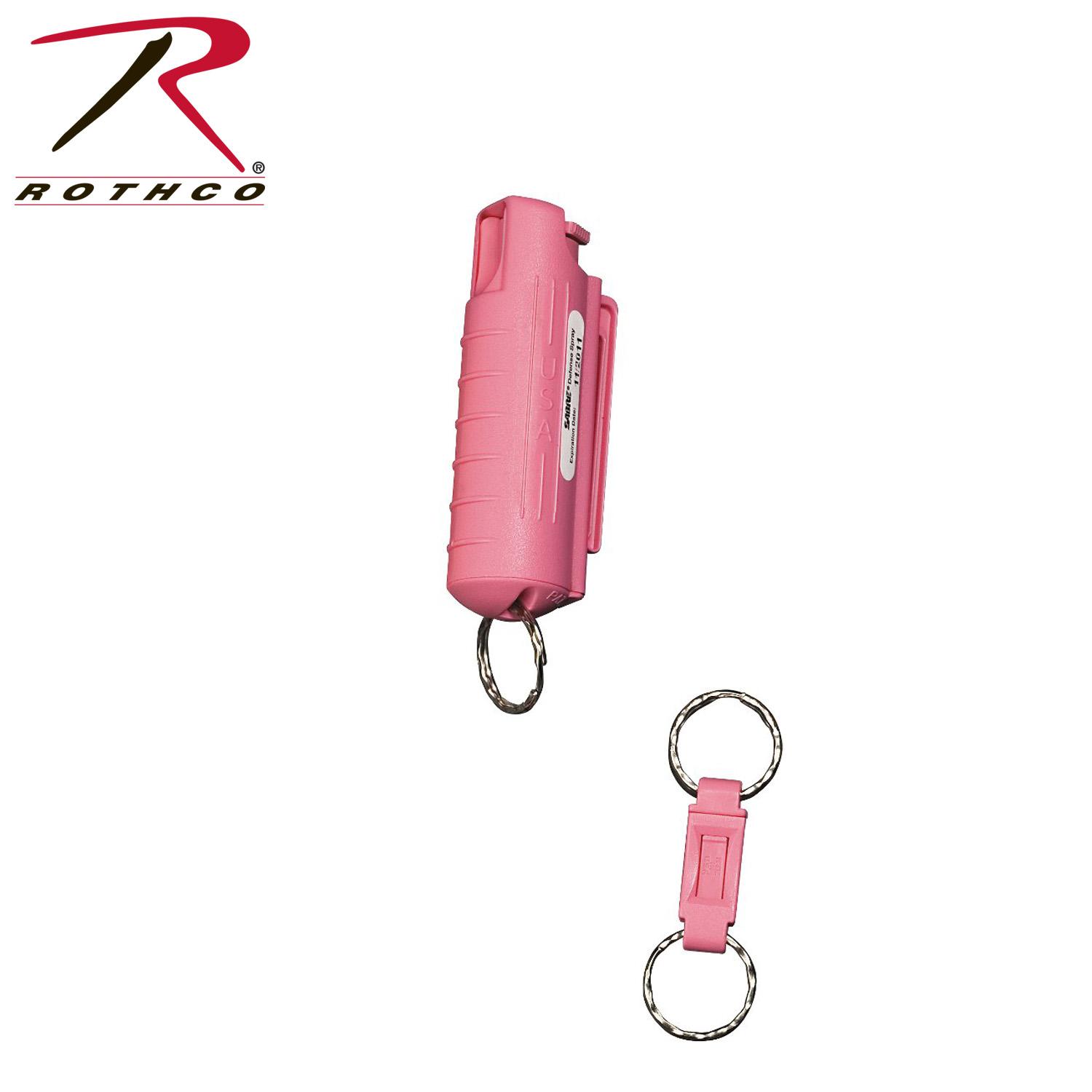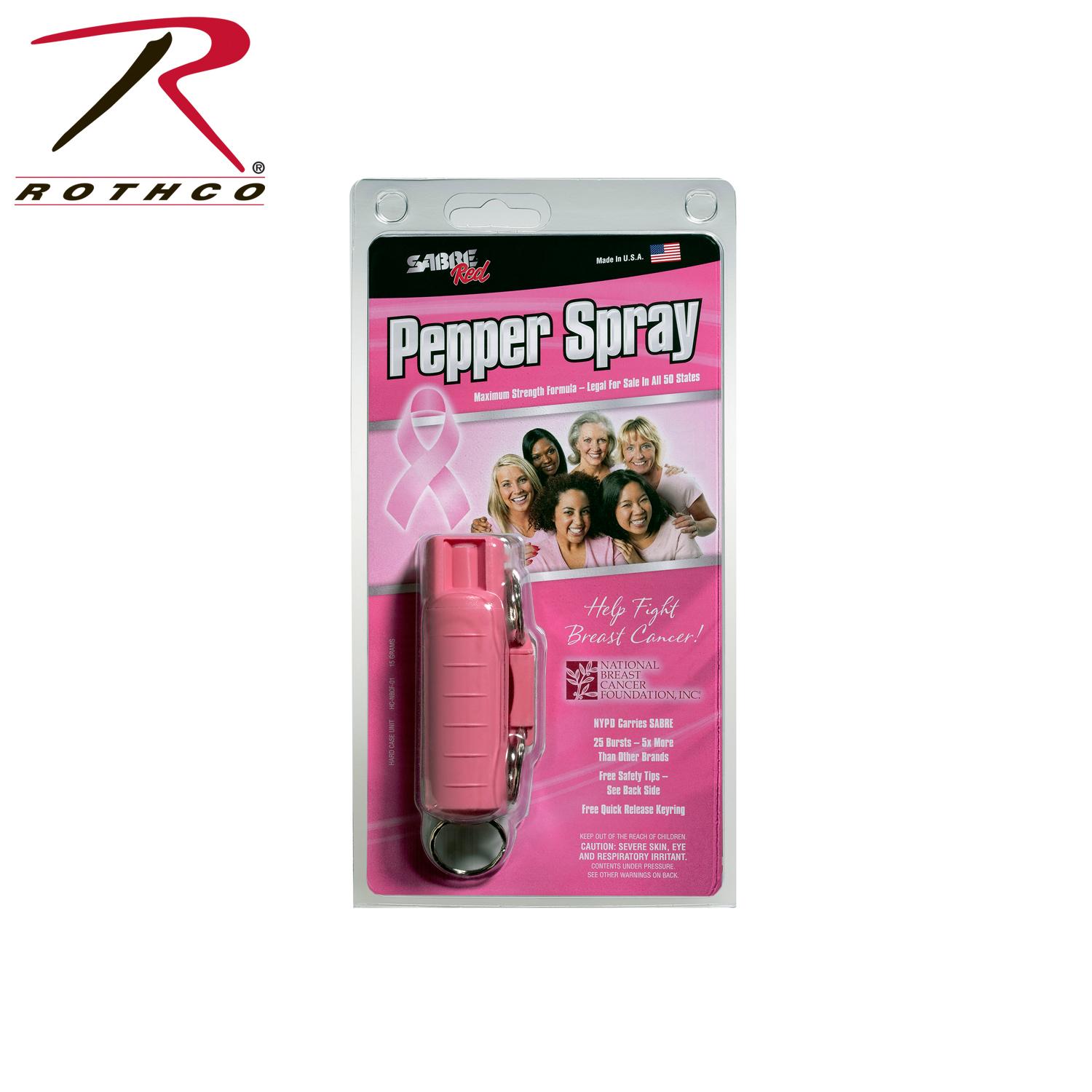 Sabre Red USA Defense Spray offers maximum stopping power with its pepper spray formula. Complete with a pink hard case and quick release key ring for hands-free carry, the Sabre Red Pepper Spray has a ballistic stream which reduces wind blow-back. With a range of 8 to 10 feet and containing approximately 25 shots, this is the ideal personal protection item. Proceeds From This Purchase Help Fight Breast Cancer. ISO 9001 Certified.