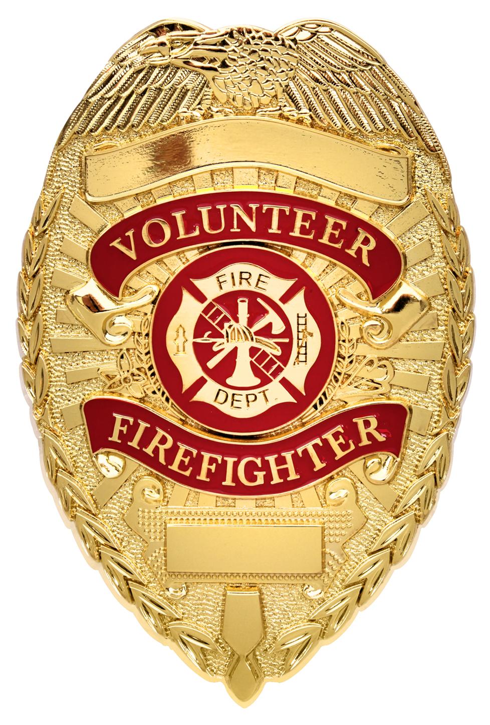 Rothco Deluxe Fire Department Badge, measuring 3 1/8” x 2 ¼”, displays the text “Volunteer Firefighter” on a zinc alloy shield with your choice of a nickel or gold plating and has a durable pin backing which allows for easy mount and removal on uniforms or other gear.