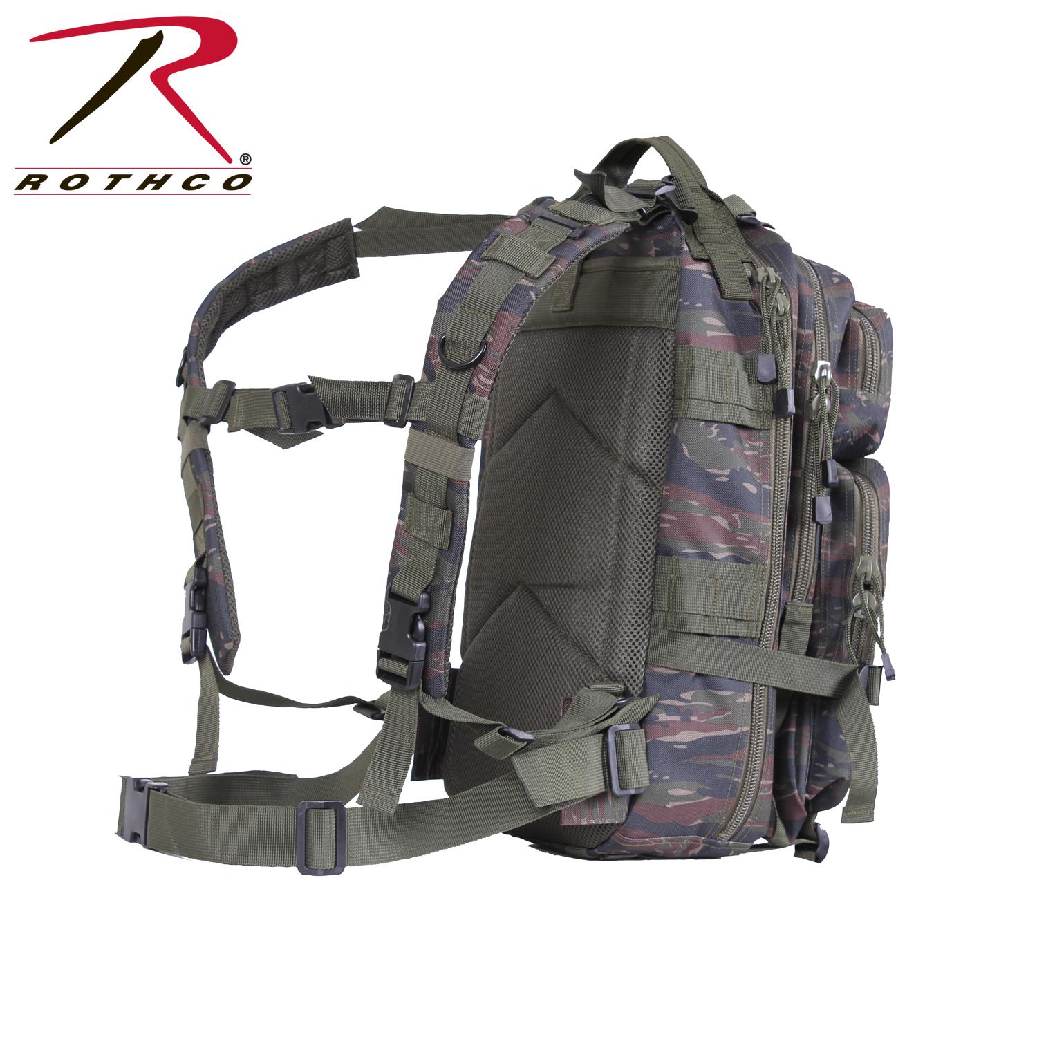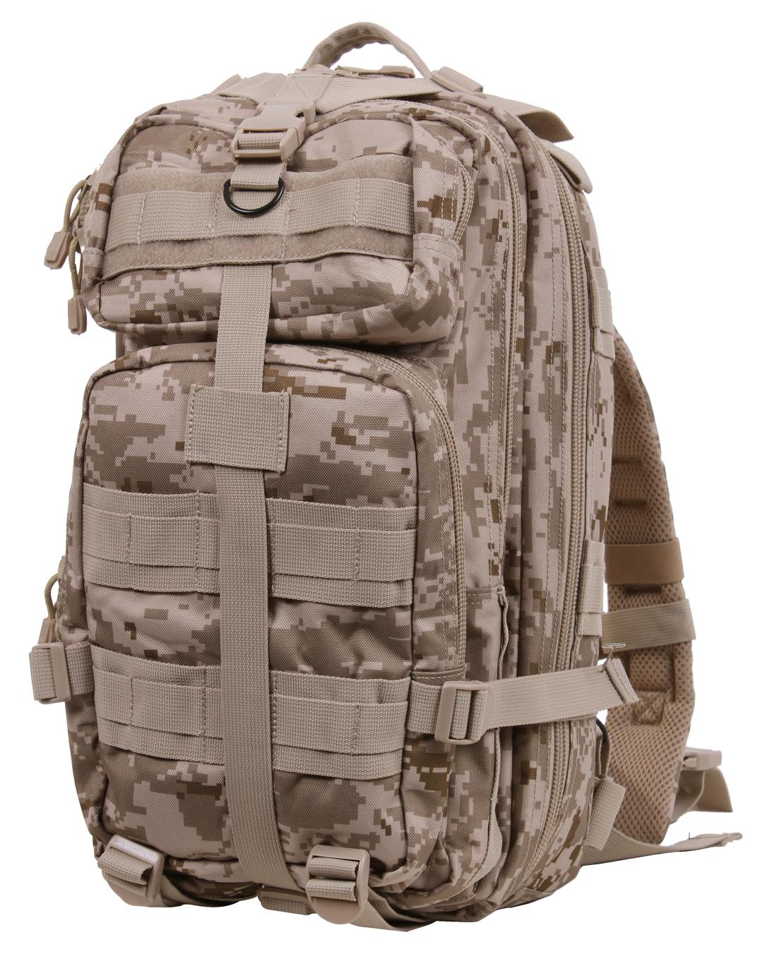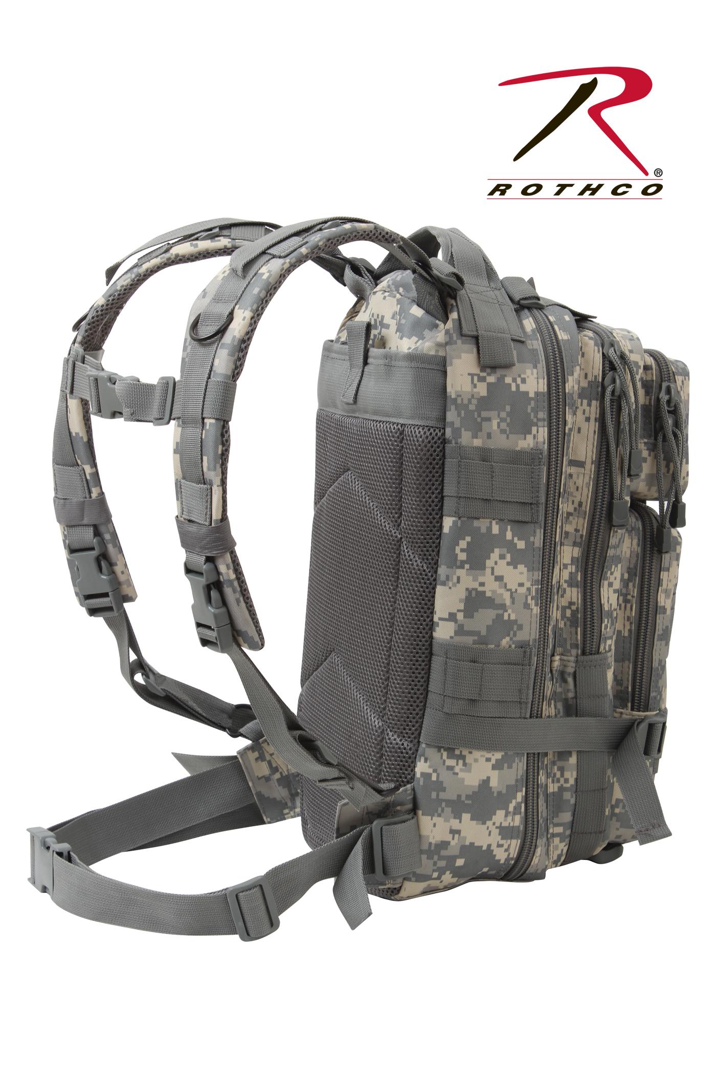 Rothco presents the Camo Medium Transport Pack, a pinnacle of tactical efficiency. Rothco stands out as the leader in camouflage clothing and accessories. With a rich heritage spanning over 7 decades, we have honed our expertise in crafting durable and effective camouflage gear. Our extensive range of products, including apparel, bags, and gear, showcases a diverse selection of camouflage, with over 35 patterns available! From outdoor enthusiasts and military personnel, to skate and fashion, Rothco is the go-to brand for camo.This service backpack, built with heavyweight construction, ensures unparalleled durability for any service excursion. Measuring 17 inches x 10 inches x 9 inches, it features over 10 compartments and pockets, making it ideal for organizing your essential gear, whether for daily use or as a bug out bag. The large main compartment boasts a zippered pouch and mesh pocket for storing larger items, while the top and bottom front pockets with internal open-top pockets provide efficient organization for smaller essentials. The middle compartment, with an open-top pocket and two small mesh pockets, adds to the versatility of storage options. Designed for outdoor enthusiasts, the backpack includes a built-in pouch for hydration bladders, transforming it into an excellent hiking companion. The water-resistant material coating protects your belongings from the elements. Enhanced with three rows of MOLLE webbing, this backpack enables the mounting of pouches, holsters, and other MOLLE-compatible gear, offering customization to suit your needs. Heavy-duty main zippers extend the entire length of the bag, ensuring easy access and storage. The adjustable padded shoulder straps with quick-release buckles provide swift removal in emergencies, while the removable waist belt aids in weight distribution and pack stabilization for carrying heavy loads. Experience optimal comfort with the padded mesh back, providing cooling airflow during extended wear. Additional c