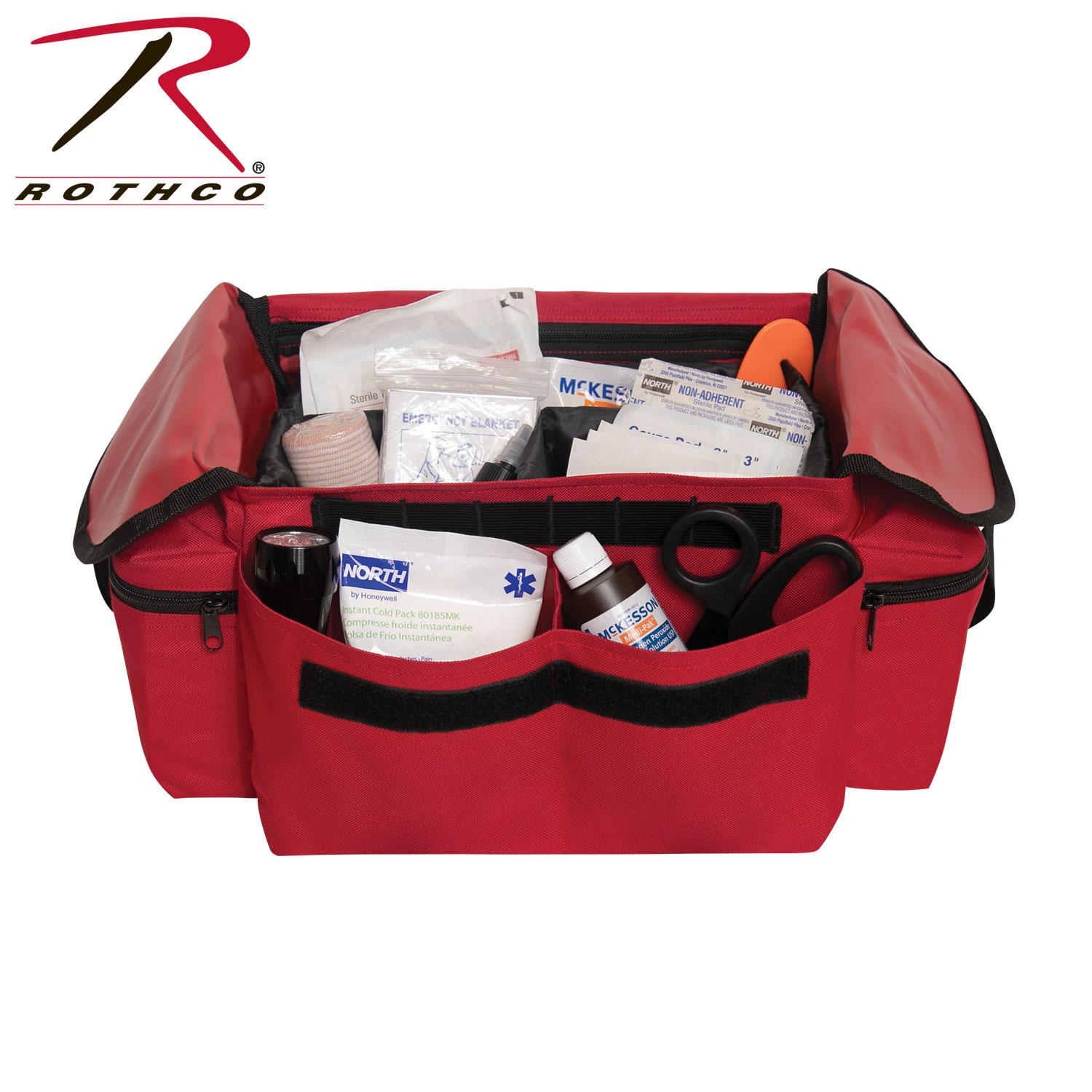 Rothco’s Medical Rescue Response Bag is the most versatile and convenient medical bag you can own! Featuring over 7 multipurpose pockets/pouches for all your medical gear and equipment; including a hidden zipper pocket underneath the front flap with tool loops. Keep your first aid equipment secure with the quick release buckle and hook and loop front flap closure. The first responder bag can be easily carried with the detachable and adjustable shoulder strap or the top carry handle. Made of denier polyester material, the EMT response bag is super rugged and built to withstand all incidents that come your way. This emergency response bag includes a reflective star of life emblem in the center of the front flap closure. (Accessories Sold Separately)