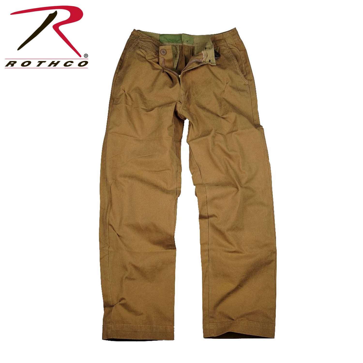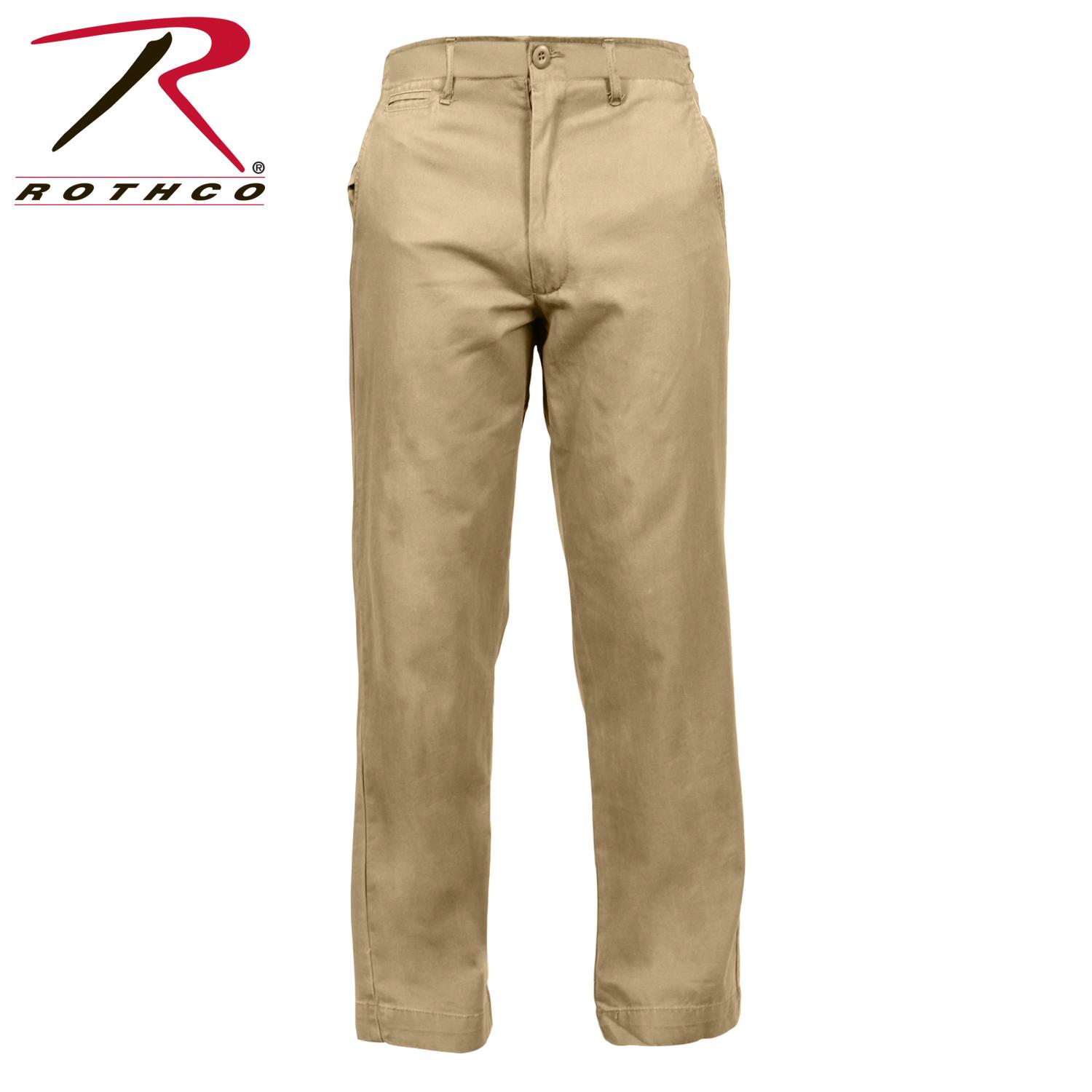 Rothco's Vintage Chino Pans feature a 100% Washed Cotton material, 4 pockets, plus a small concealed pocket and a zipper fly.
