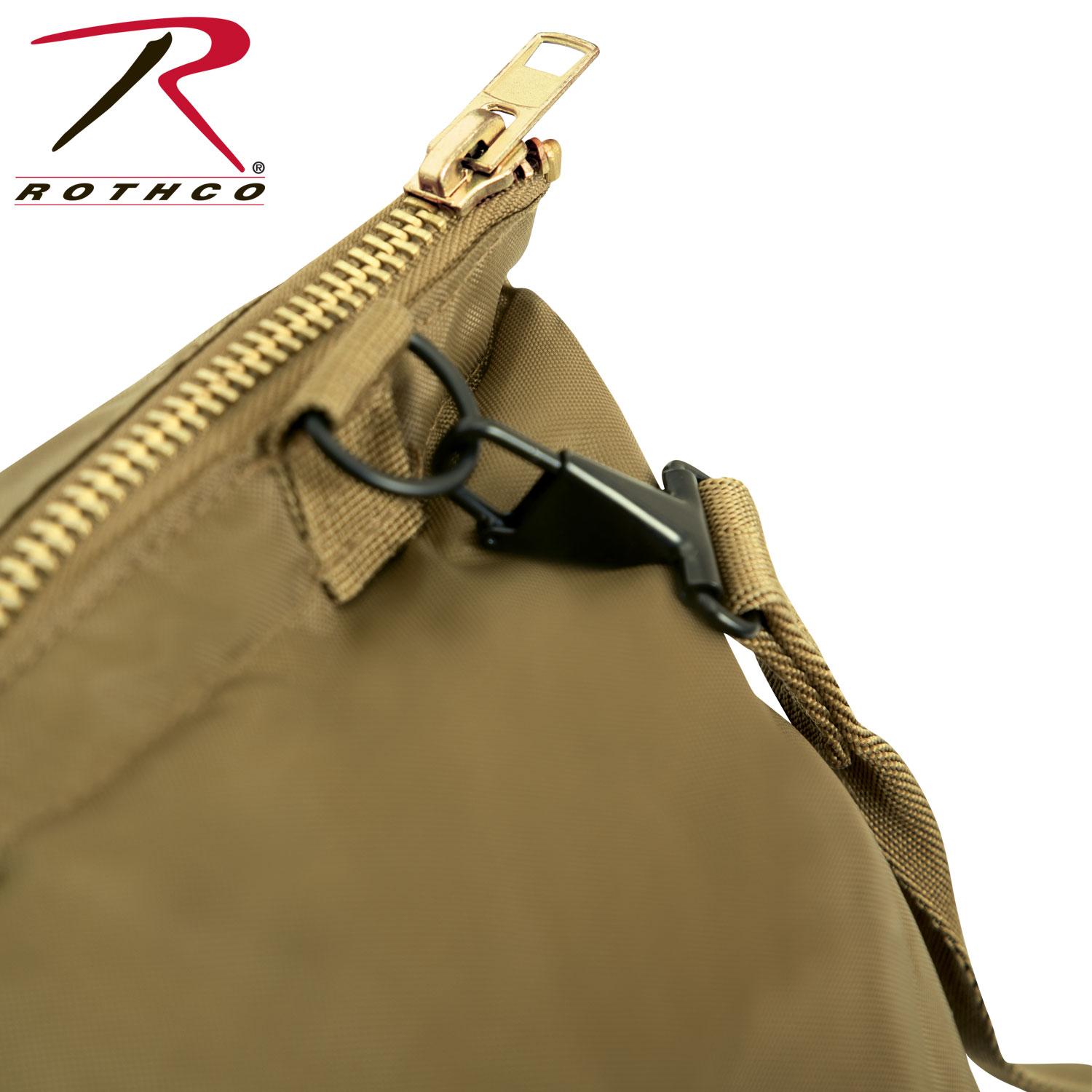 Rothco’s Flyers Helmet Shoulder Bag (19” X 19”) is the most convenient carry-on bag for military personnel to store their helmet, helmet attachments, and other essential gear. Designed with heavyweight denier polyester and a padded interior, the military helmet bag will keep your contents safe and secure while you travel. Two outside hook and loop pockets with added snap closure provide an efficient way to store and organize your supplies. Easily carry your bag with the adjustable and removable shoulder strap or the top carry handles. In addition, the brass zipper closure will keep your contents safely secure. The flyer helmet bag is perfect for not only military personnel, but skaters, motorcyclists, and bicyclists as well.