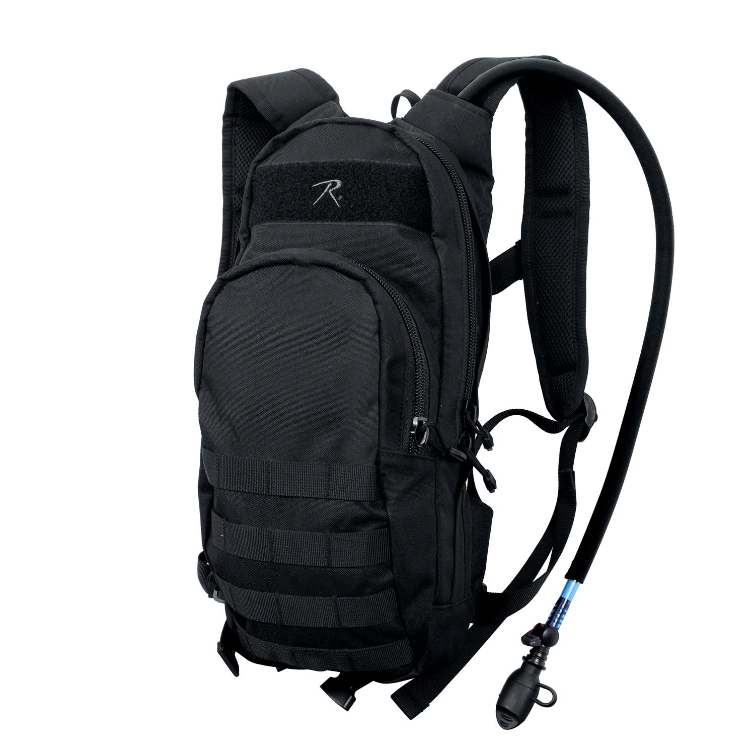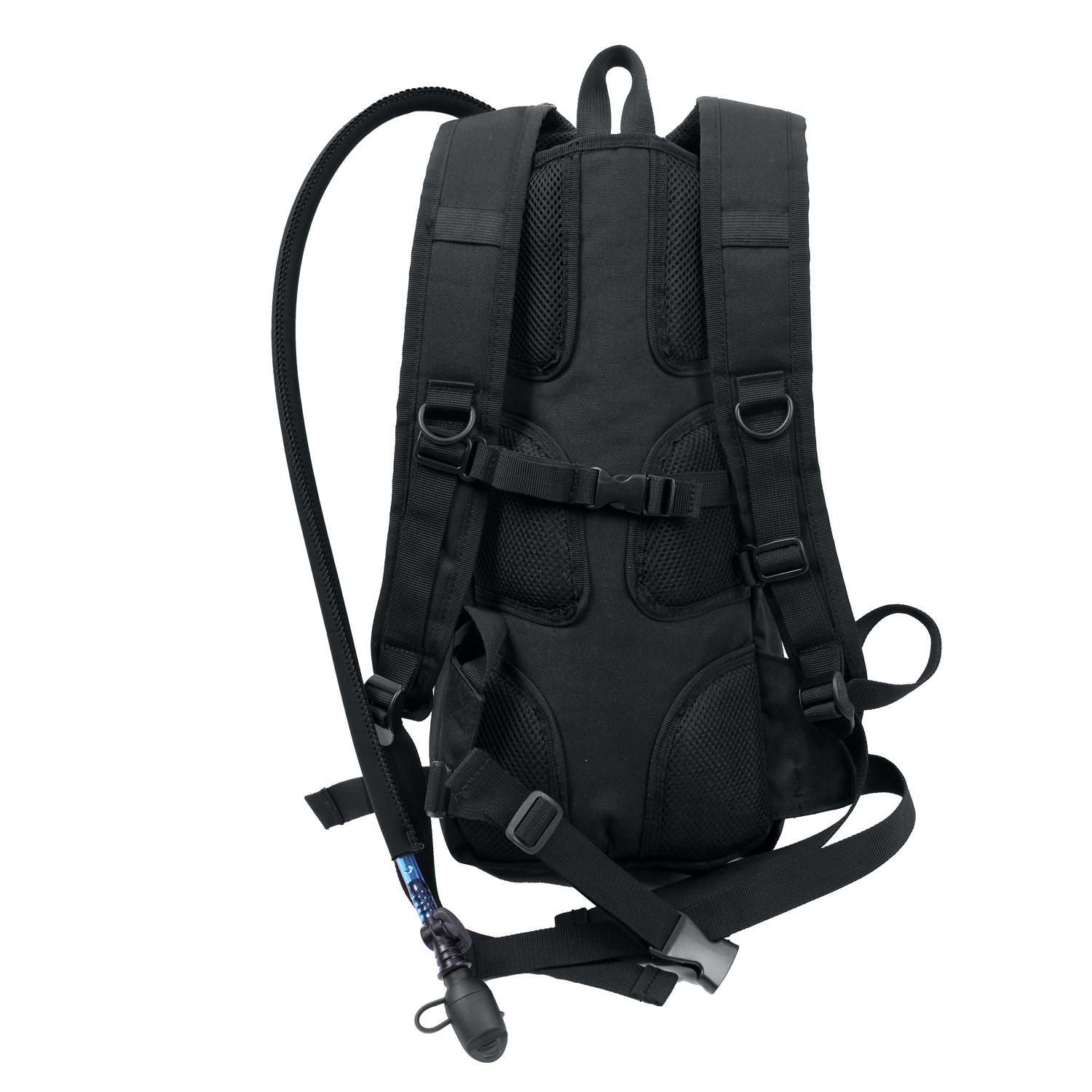 On a hike, run, or cycling through the streets, Rothco’s Quickstrike Tactical Hydration Backpack is the perfect complement for your journey; keeping you hydrated while on the go. Rothco’s Quickstrike Backpack is designed to be fully compatible with a hydration bladder; store the bladder in the expandable zipper main compartment, and feed the hydration hose through either the left or the right shoulder strap so you have easy access to your water while traveling. In addition to the shoulder straps, there are quick release buckle straps at the center chest and waist for additional security while on the move. The front zippered compartment contains a key clip and two mesh pockets so you can store and organize your everyday items. The front of the smaller compartment features 4 X 4 MOLLE loops so you can attach various MOLLE compatible items. Constructed with a rugged denier polyester material and back side pads, the hydration pack is designed to be lightweight, durable, and comfortable for all-day wear. Rothco’s hydration backpack is the perfect pack for any outdoorsman, including hikers, mountain bikers, campers, and more!