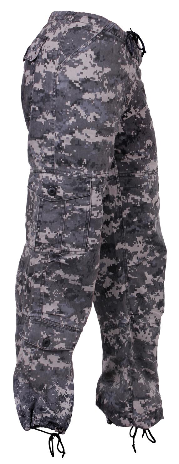 Rothco Women's Camo Vintage Paratrooper Fatigues feature 8 versatile pockets and are perfect for any occasion. Made of a super soft and durable ramie/cotton blend, these paratrooper fatigues are not only comfortable and soft, but they are also built with maximum durability and are lightweight. Zipper fly, drawstring ties, and a button are present on these camo pants as well.