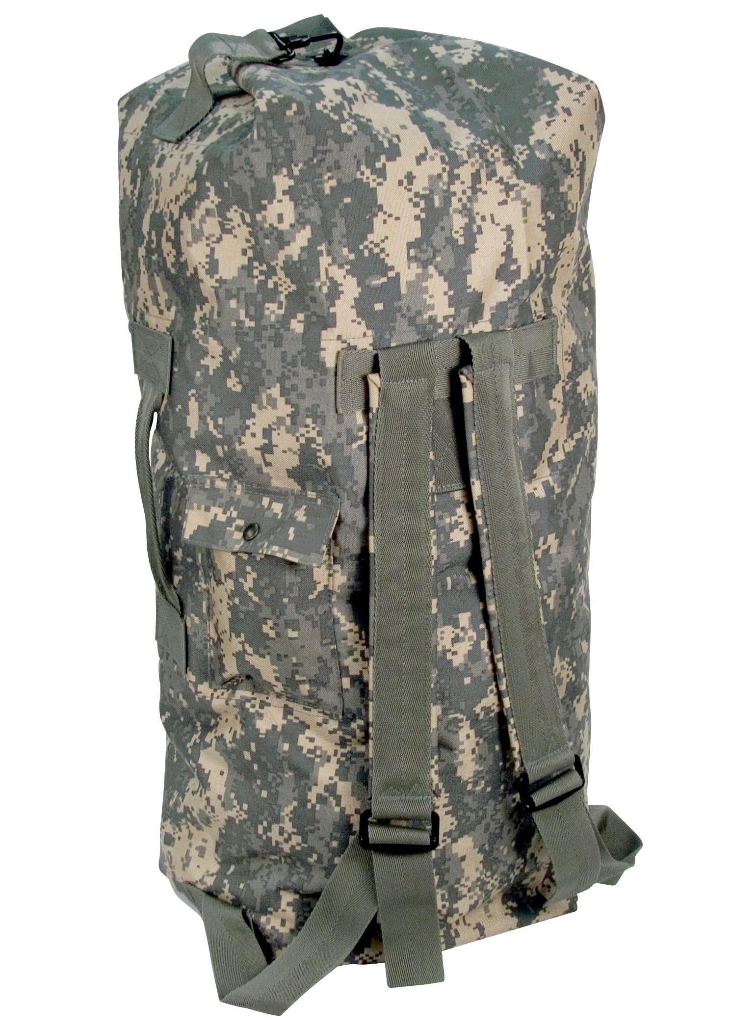 Rothco's Enhanced Double Strap Duffle bag, constructed of a heavyweight material for durability, provides spacious storage for all of your gear. The two adjustable shoulder straps and the side handle allow for an easy and comfortable carry that is perfect for travel. Measures 24" x 36".