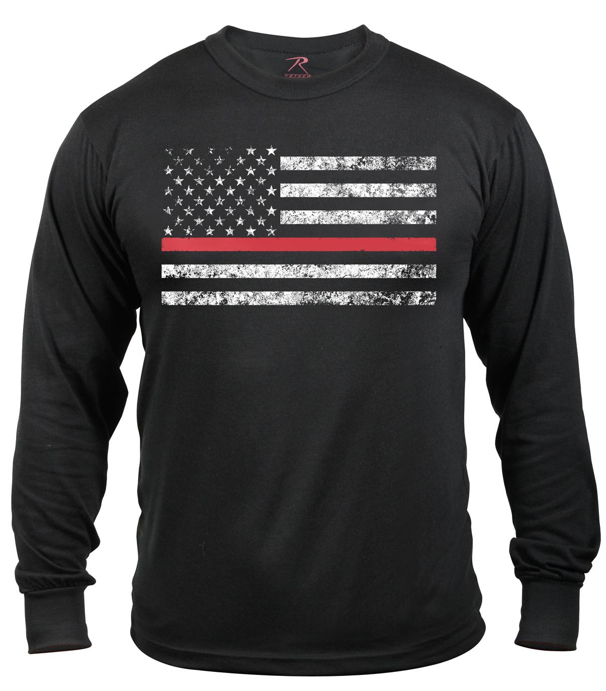 The Thin Red Line represents camaraderie and sacrifice of firefighters and first responders to fires and disasters. Rothco's Thin Red Line Long Sleeve T-Shirt features a distressed flag with a red line. The long sleeve shirt is made from a soft cotton/polyester blend.