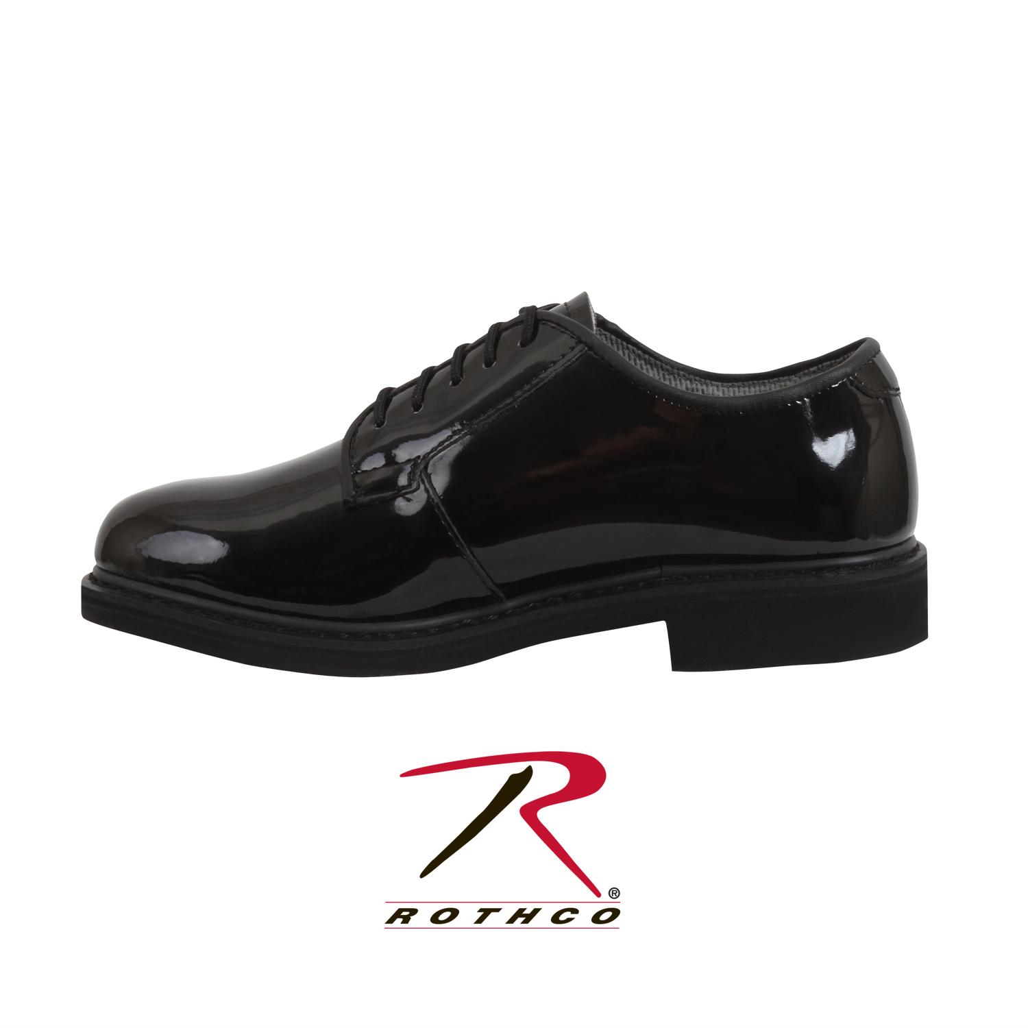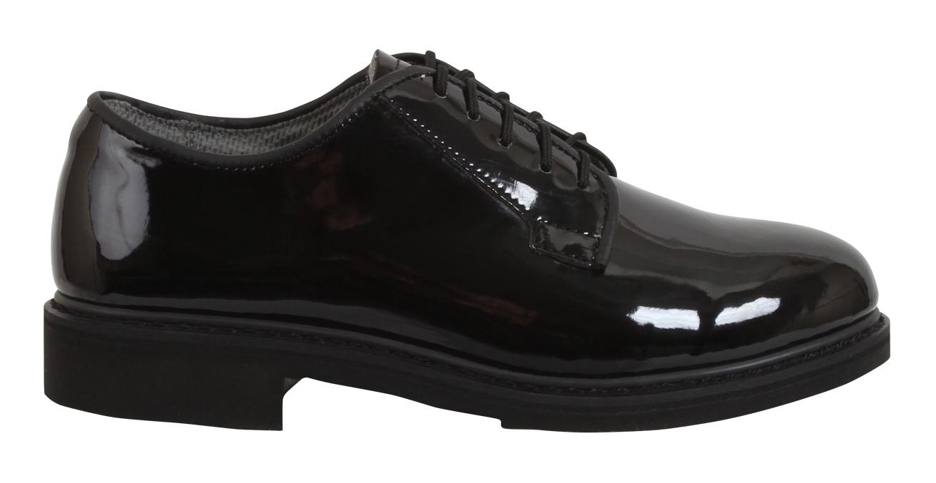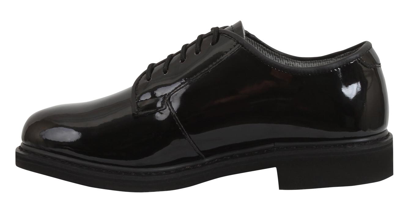 Rothco's Uniform Hi-Gloss Oxford Dress Shoes offer a sleek, professional appearance without sacrificing comfort. The lightweight formal dress shoe provides the perfect inspection-ready mirror shine that will have you ready for duty. The cushioned sole provides added comfort, so you can wear them all day. And with fully stitched soles and a traditional Goodyear welt, they are built to last. Look professional at all times with Rothco's Hi-Gloss Dress Shoes – perfect for active duty, public safety professionals, students, or everyday wear.