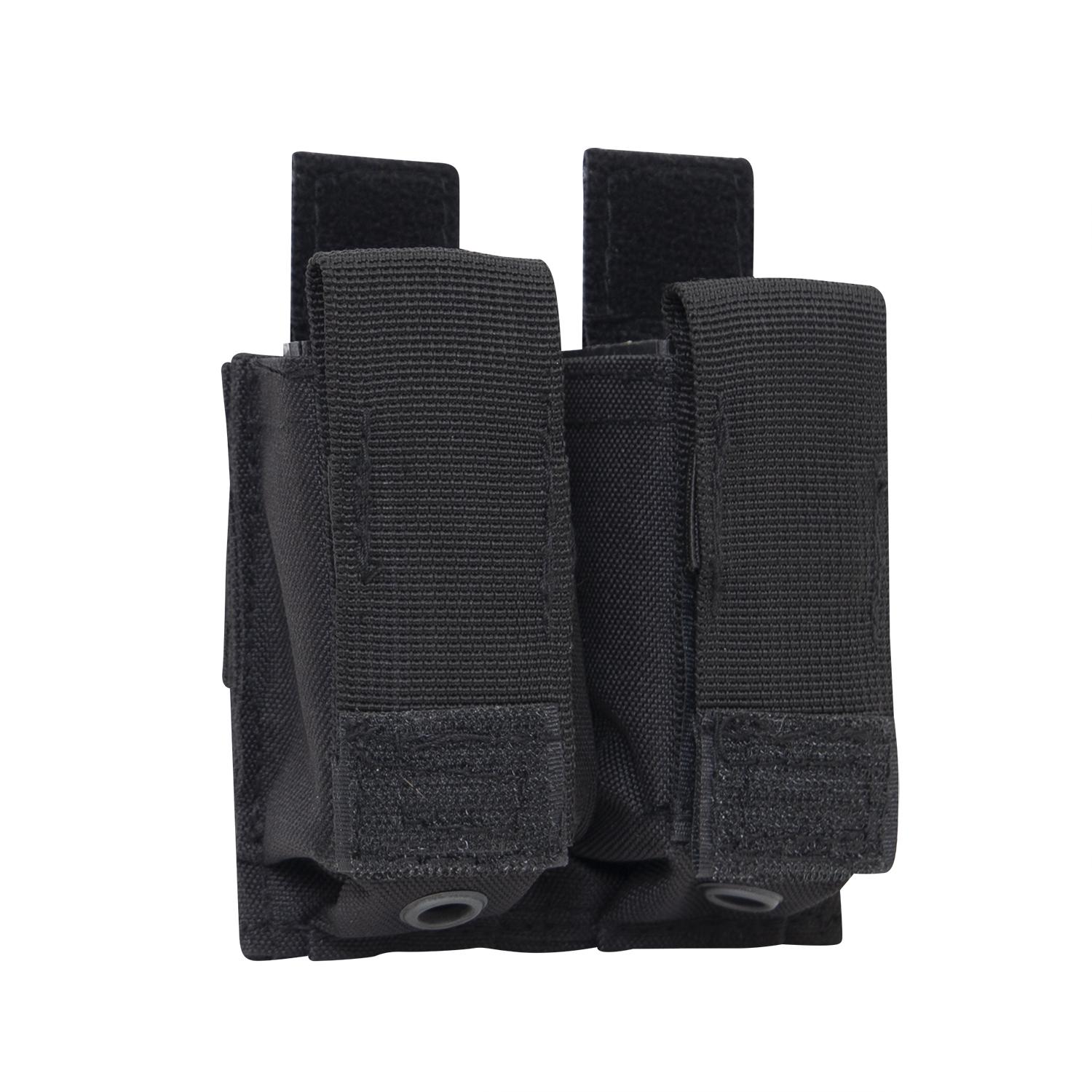 Keep your extra ammo handy with Rothco’s MOLLE Double Pistol Mag Pouch with Inserts. This MOLLE compatible mag pouch is perfect for soldiers, public safety, and more. The durable inserts add a layer of friction to safely secure your pistol mags and help maintain the shape of the pouches. The ammo pouches are ideal for adding onto MOLLE vests, MOLLE belts, and anything with a MOLLE panel. Strong hook and loop closures keep your mags in place and provide rapid access to your mags with quick-release pull tabs. The hook and loop closures can also be fastened to the front of the mag pouch to keep the top of the pouches open for easy reloads at the range. These convenient MOLLE attachments fit most standard pistol mags like 9 mm, .40 cal, and more.