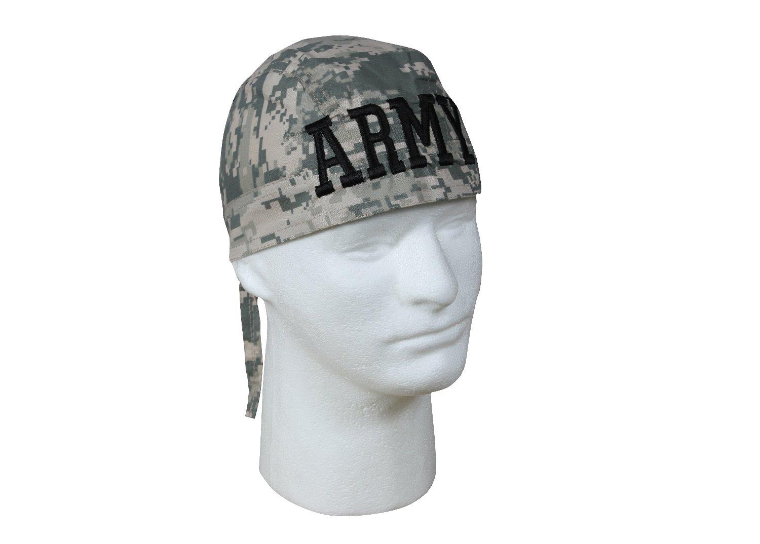 Rothco’s Army Headwrap is made of 100% cotton material. The headwrap features “Army” in black lettering across the front center of the headwrap. Rothco’s all-weather Army Headwrap ties in the back and is one size fits all.