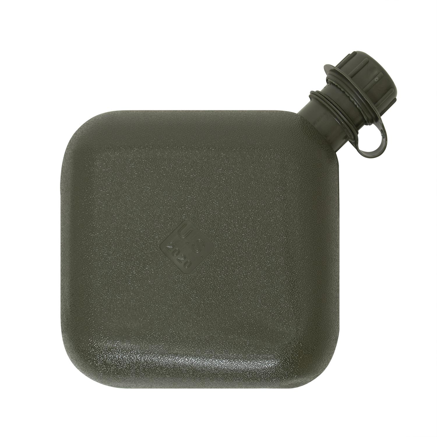 The GI Bladder Canteen makes it easy to hold and store water in the field. Measuring at 7 1/4" x 7 1/4" x 3" (9" including the cap), this military-style canteen holds up to 2 quarts of liquid and is BPA free. Rothco's bladder canteen is also collapsible, making it ideal for storing in bags and packs, and includes an attached cap. Proudly made in the USA.