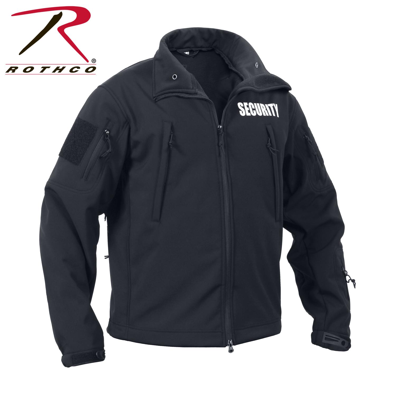 Rothco's softshell tactical jackets are constructed with a breathable moisture-wicking fabric and feature a waterproof polyester shell. The 3-layer construction deflects wind, wicks away moisture, and retains body heat, making it ideal for cold weather environments. The Spec Ops Security jacket has been specially designed for the public safety professional with "security" printed 14" x 4 1/4" on the back & 4 3/8" x 1 7/16" on the left chest.